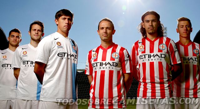 El nuevo equipo de la franquicia iniciada por el Manchester City y sus patrocinadores ha presentado sus camisetas, se trata del recién nacido Melbourne City FC, que jugará en la A-Ligue Australiana, reemplazando al extinto Melbourne Heart, vestido en su tiempo por Kappa. La multinacional americana Nike será la encargada de vestirlos, y nos muestra una camiseta de local que mantiene los bastones rojos y blancos que usaba el anterior equipo, en un modelo de corte bastante sencillo. Igual es el modelo para la camiseta de visita, pero utiliza colores que nos recuerdan a la camiseta de su equipo padre de Inglaterra, pues es de base blanca, y la atraviesan dos listones, uno de color celeste y otro más delgado de azul oscuro; ambas camisetas se acompañan de pantaloneta blanca, y estrenan el nuevo escudo del club. Te dejamos este estreno: